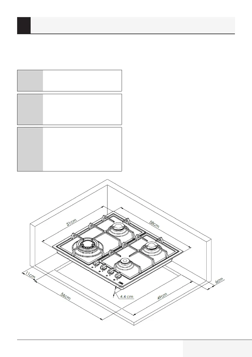 • Tagliare l'apertura per il piano cottura nel piano di lavoro