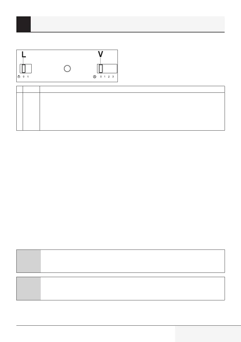 • Use low speeds (1-2) under normal conditions, and high speed (3) for intense odour and vapour.