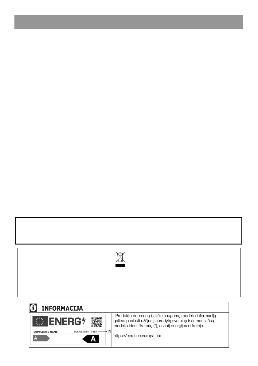 Ant prietaiso arba pakuotės esantis simbolis nurodo, kad su šiuo prietaisu negalima elgtis kaip su