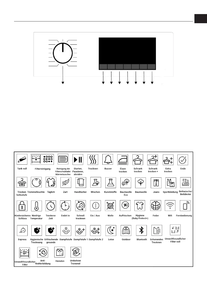 1 Ein/Aus/Programmauswahlschalter. 2 Taste zur Auswahl der Trockenheits-