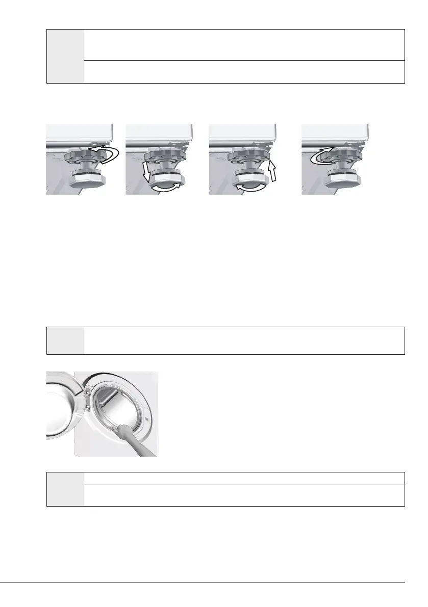 2 Điều chỉnh chân máy cho đến khi máy giặt đứng vững và cân bằng.