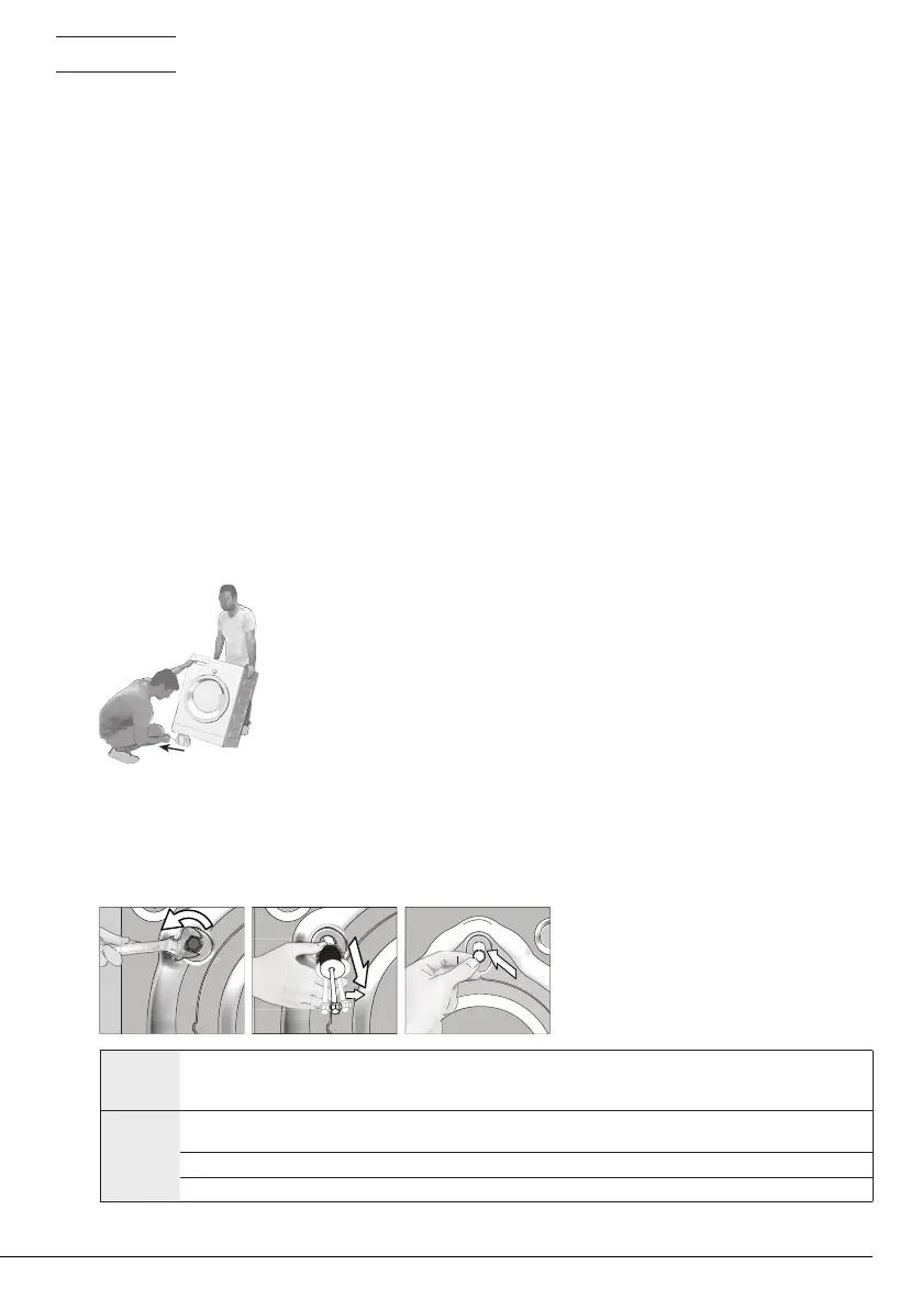 CẨN THẬN: Tháo các bu lông vận chuyển an toàn trước khi vận hành máy giặt! Nếu không, máy giặt sẽ bị