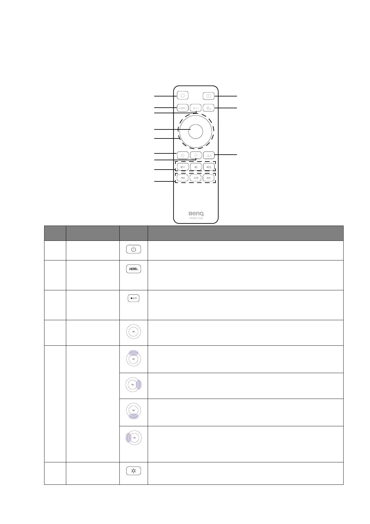 2. HDR key Accesses a list of HDR options. Press repeatedly to cycle