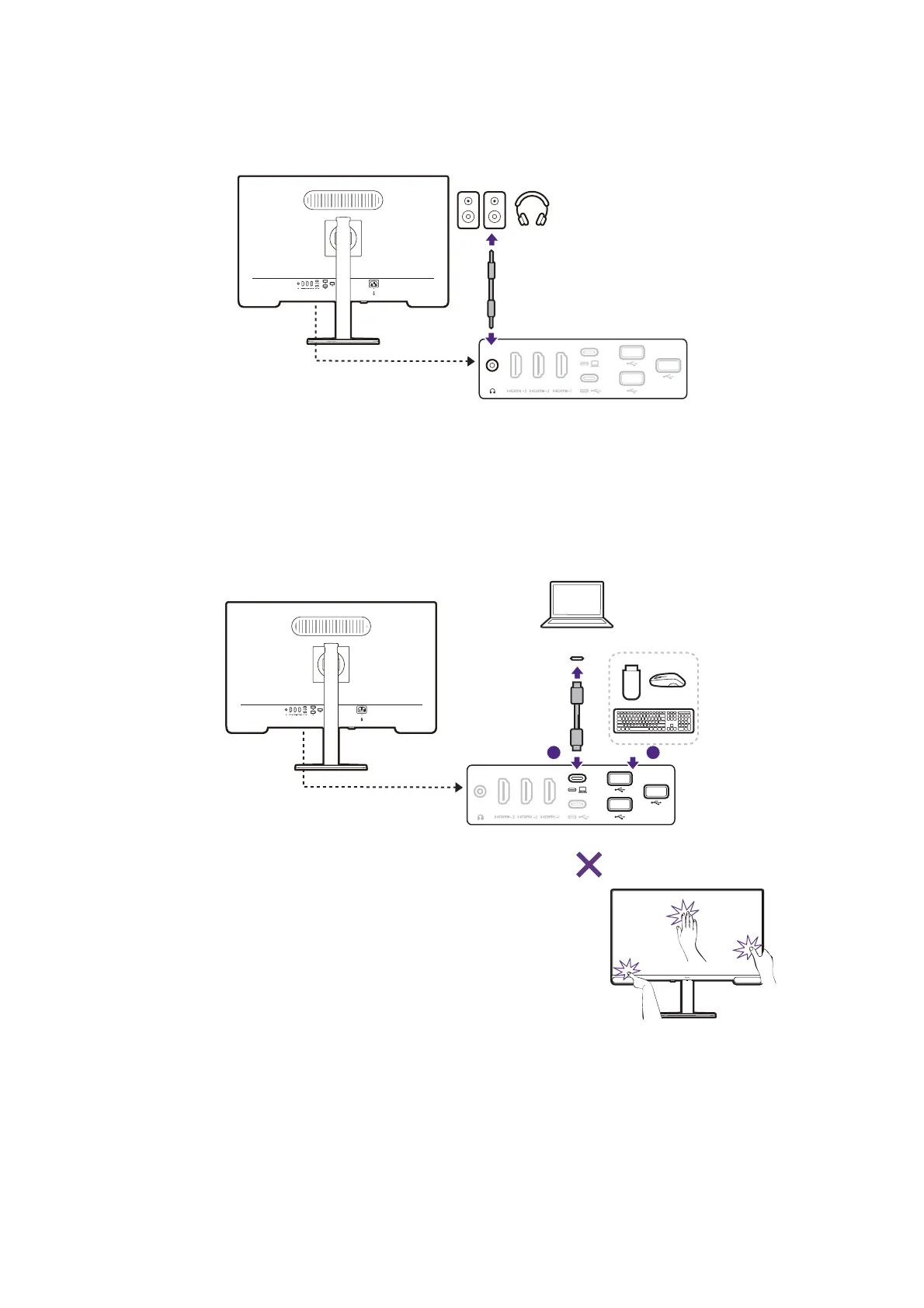 2. Connect USB devices via other USB-A ports (downstream) on the monitor. These