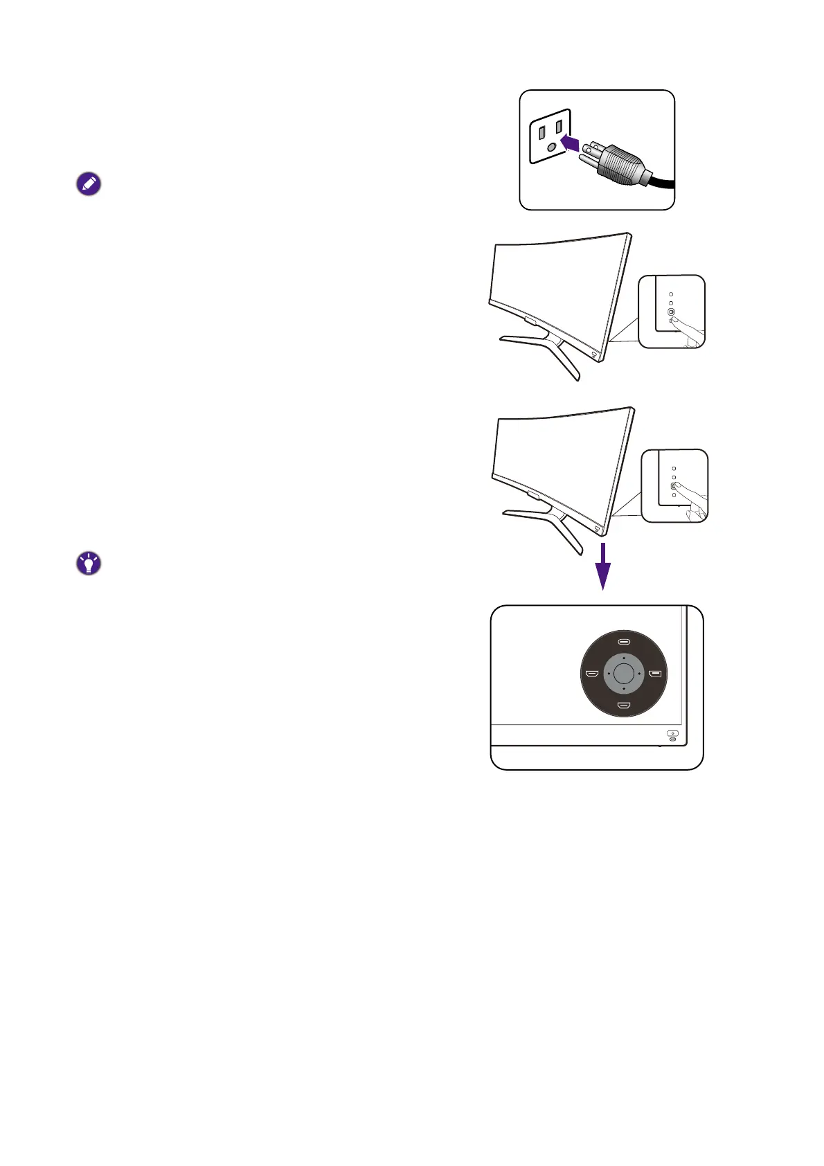 Turn on the monitor by pressing the power button on