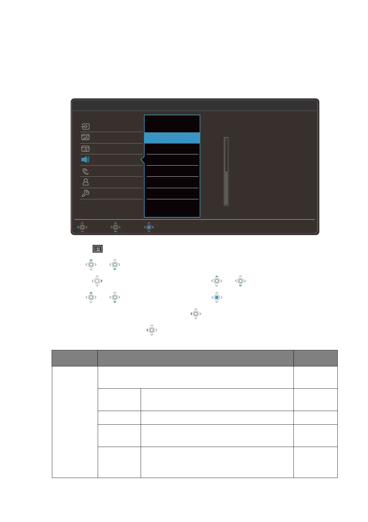 Available menu options may vary depending on the input sources, functions and settings. Menu