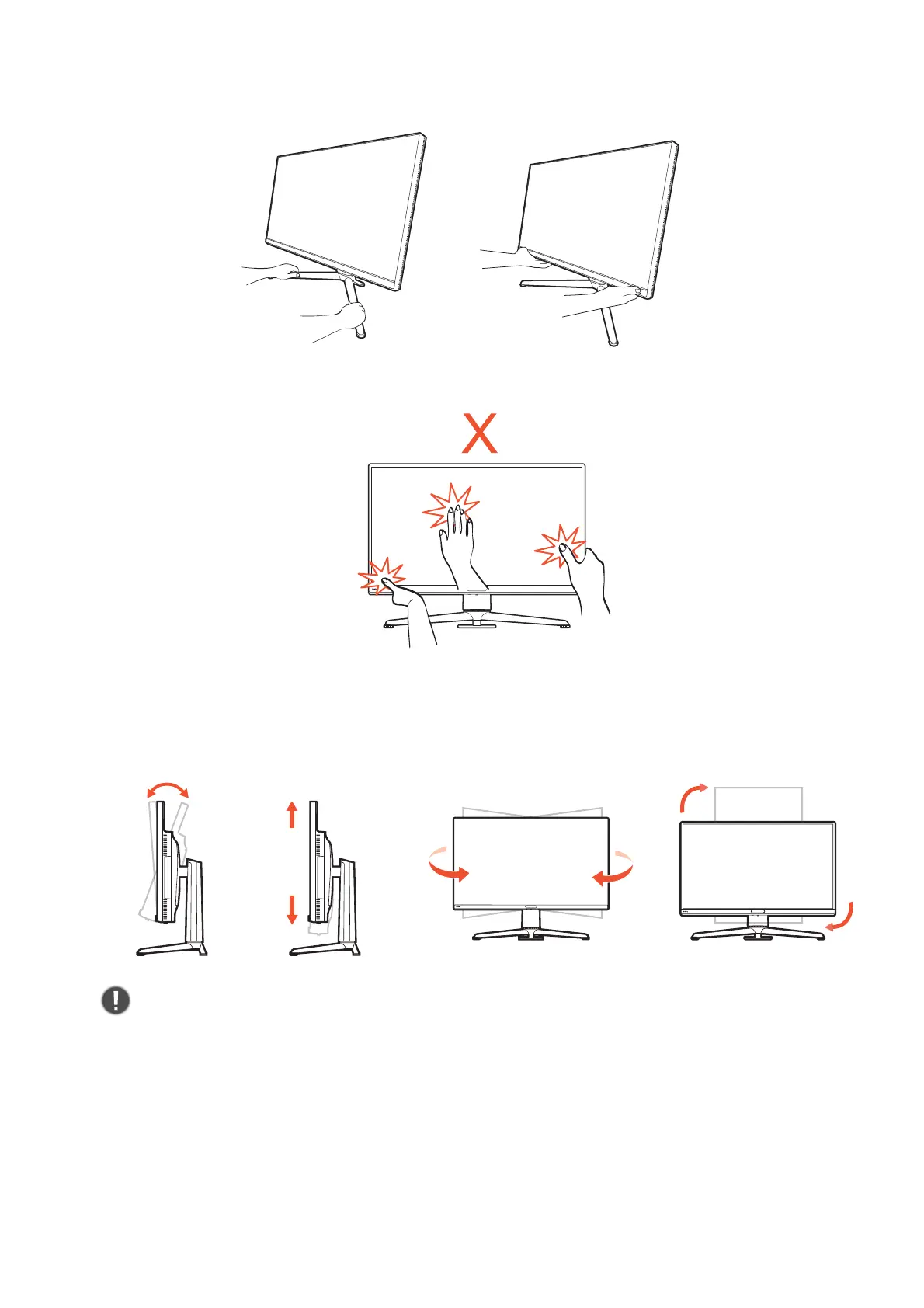 carefully by holding the lower part of monitor, the base or the stand arm.