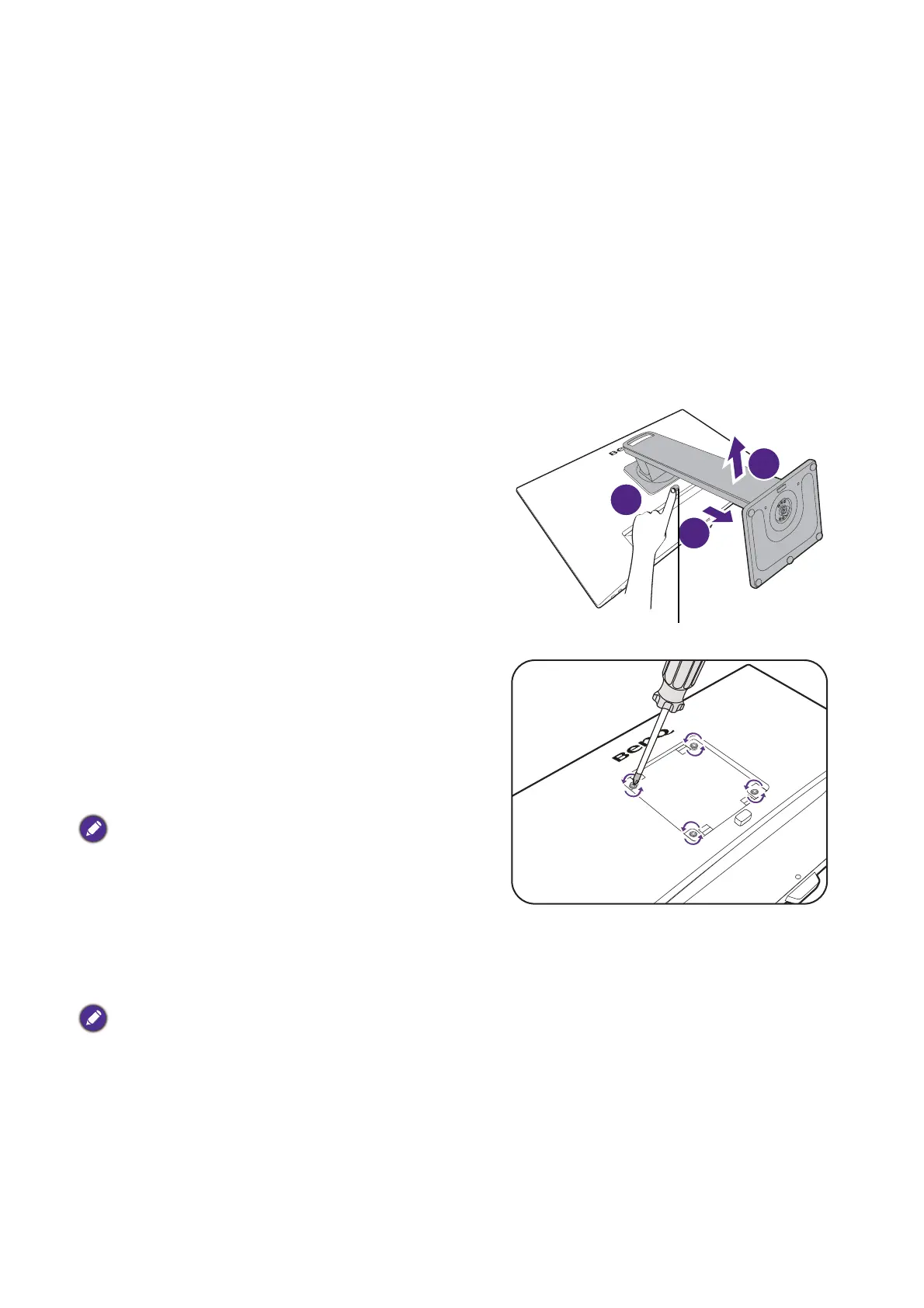 Use four M4 x 10 mm screws to fix a VESA standard wall