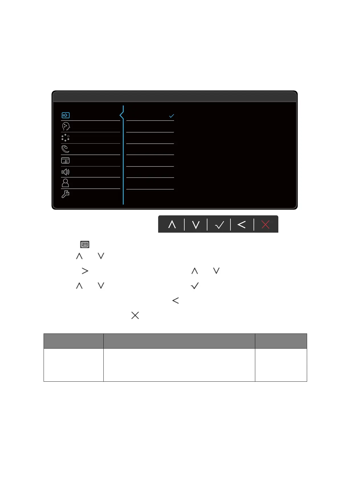 Available menu options may vary depending on the input sources, functions and settings. Menu