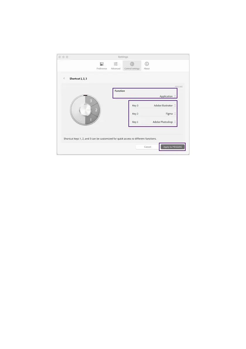 3. For each key, select an application from the preset software list or select