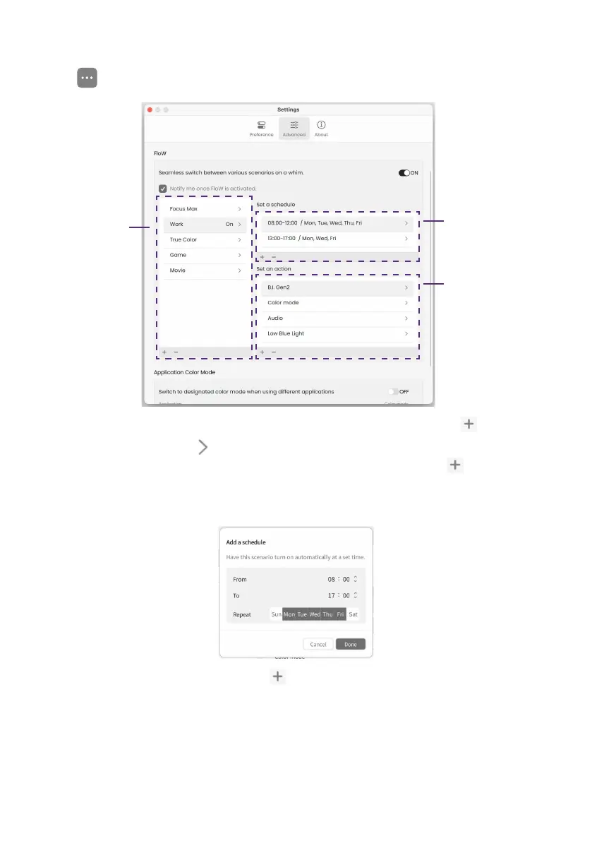 Go to (Settings) > Advanced> FloW to set your scenario rules.