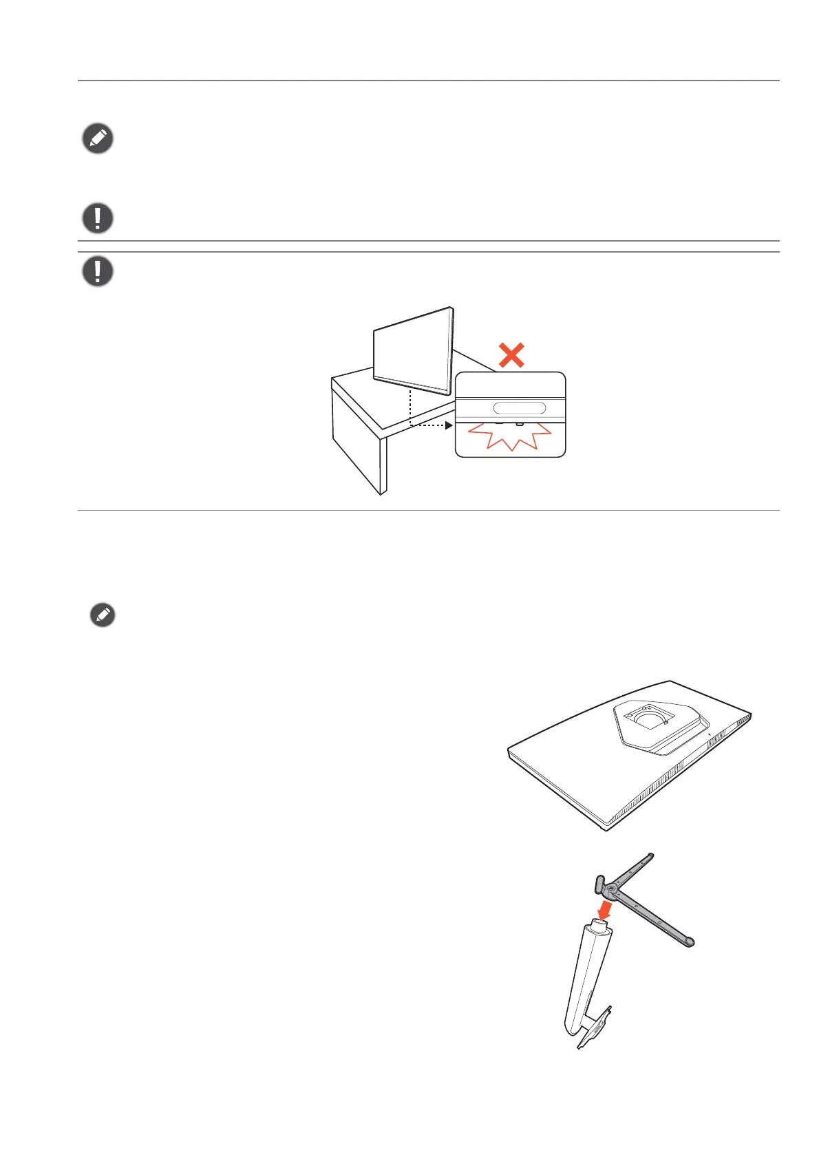 Be careful when handling the sharp monitor base and protect yourself from any physical harm.