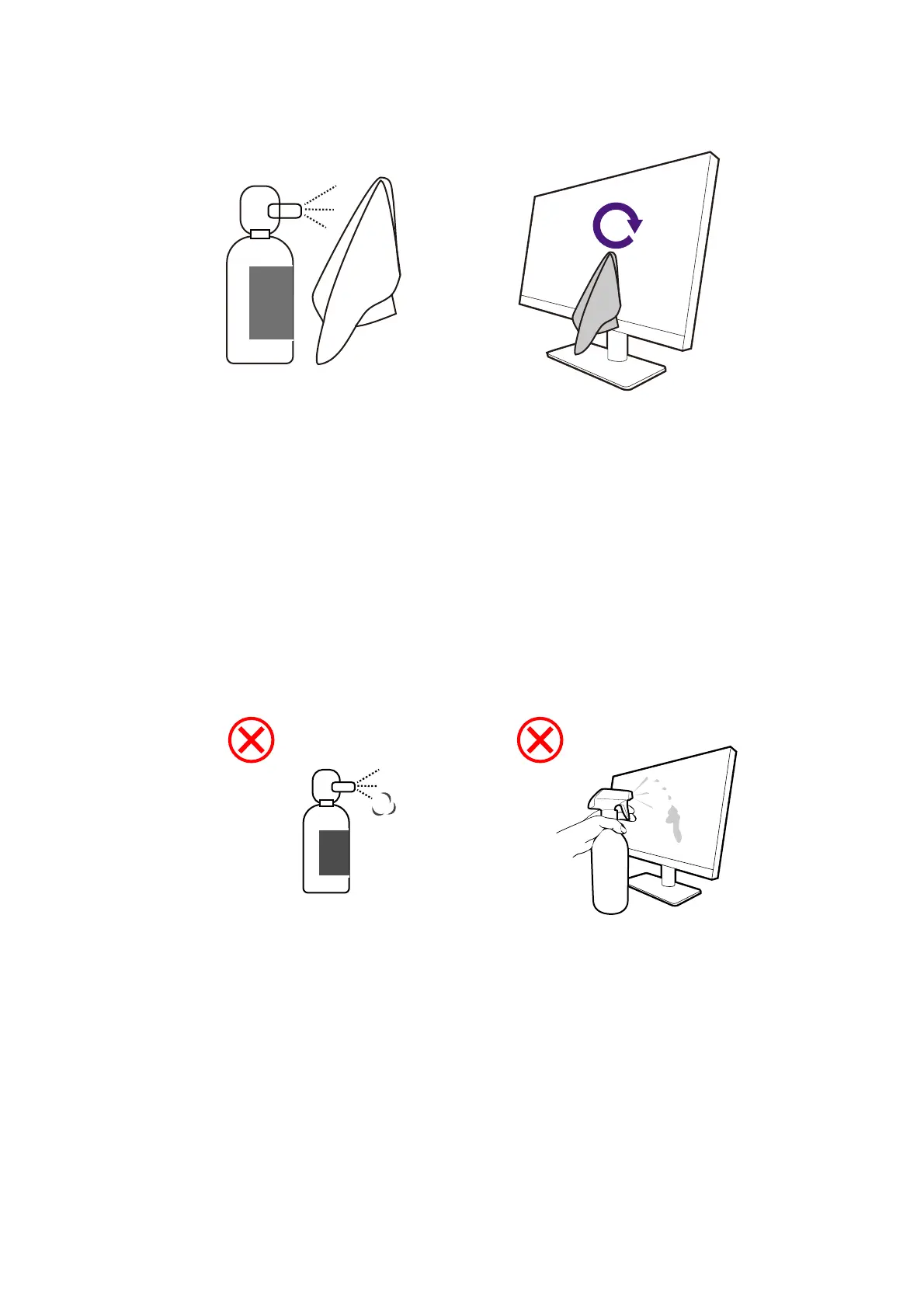 • Use screen cleaning wipes which are pre-moistened and alcohol-free. You can wipe away