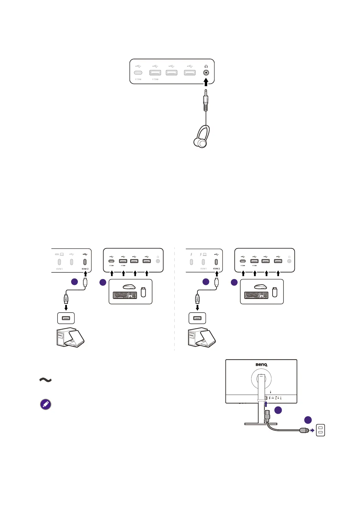 2. Connect USB devices via other USB ports (downstream) on the monitor. These downstream