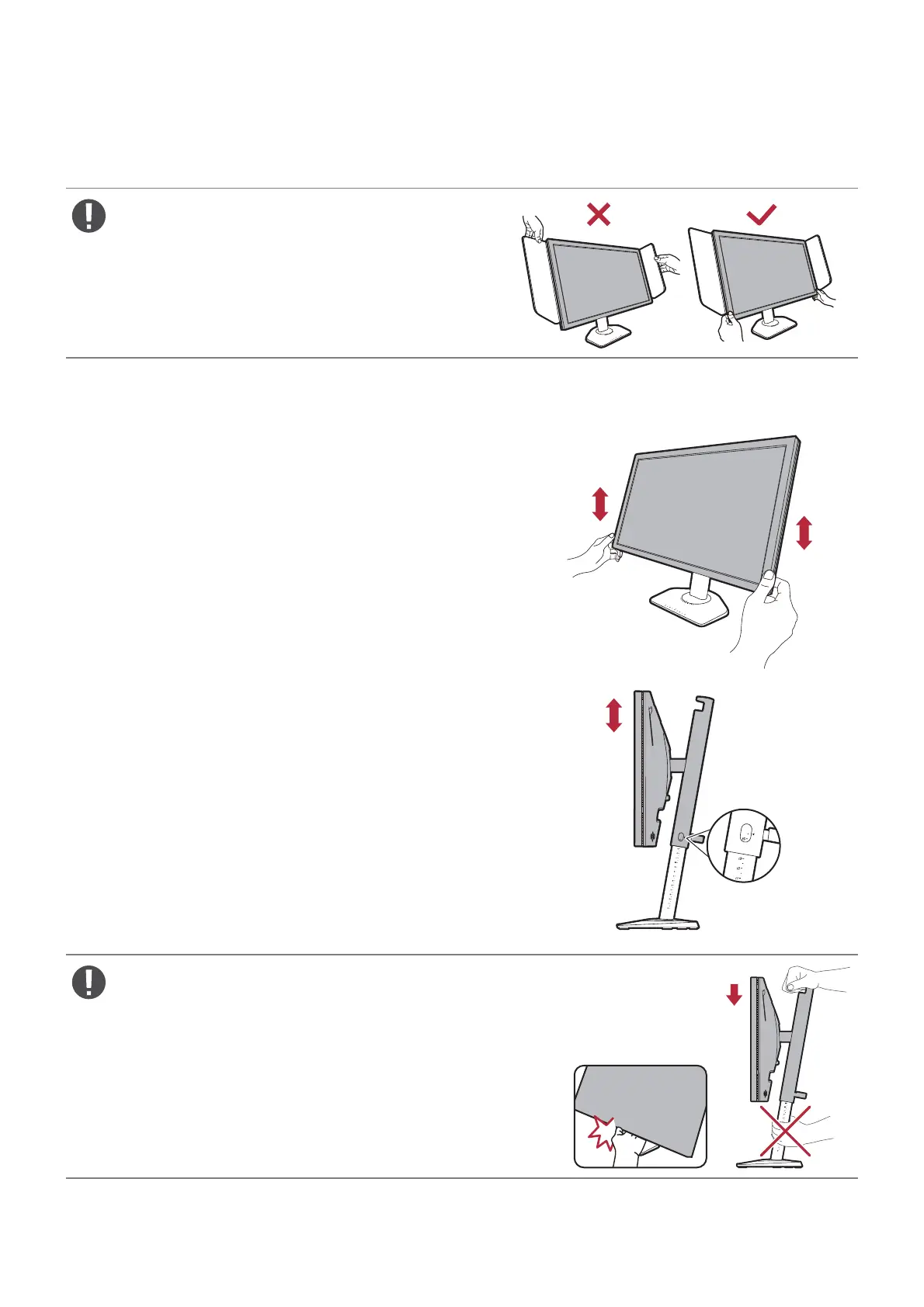 1. To adjust the monitor height, hold both the