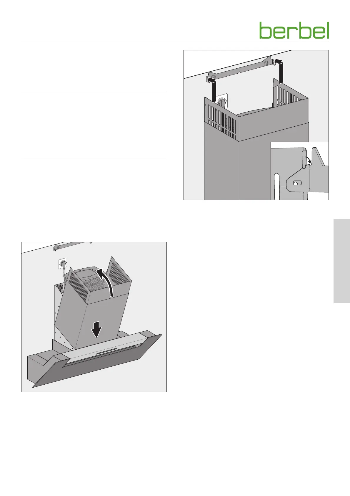 Appendere la lamiera interna in alto sull‘attacco per