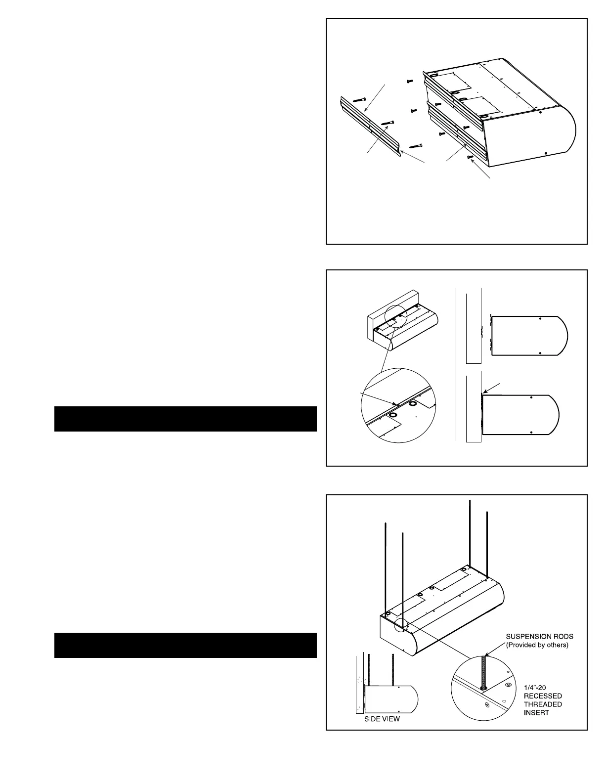 B. Install 1/4"-20 threaded rods, or other suitable hardware at