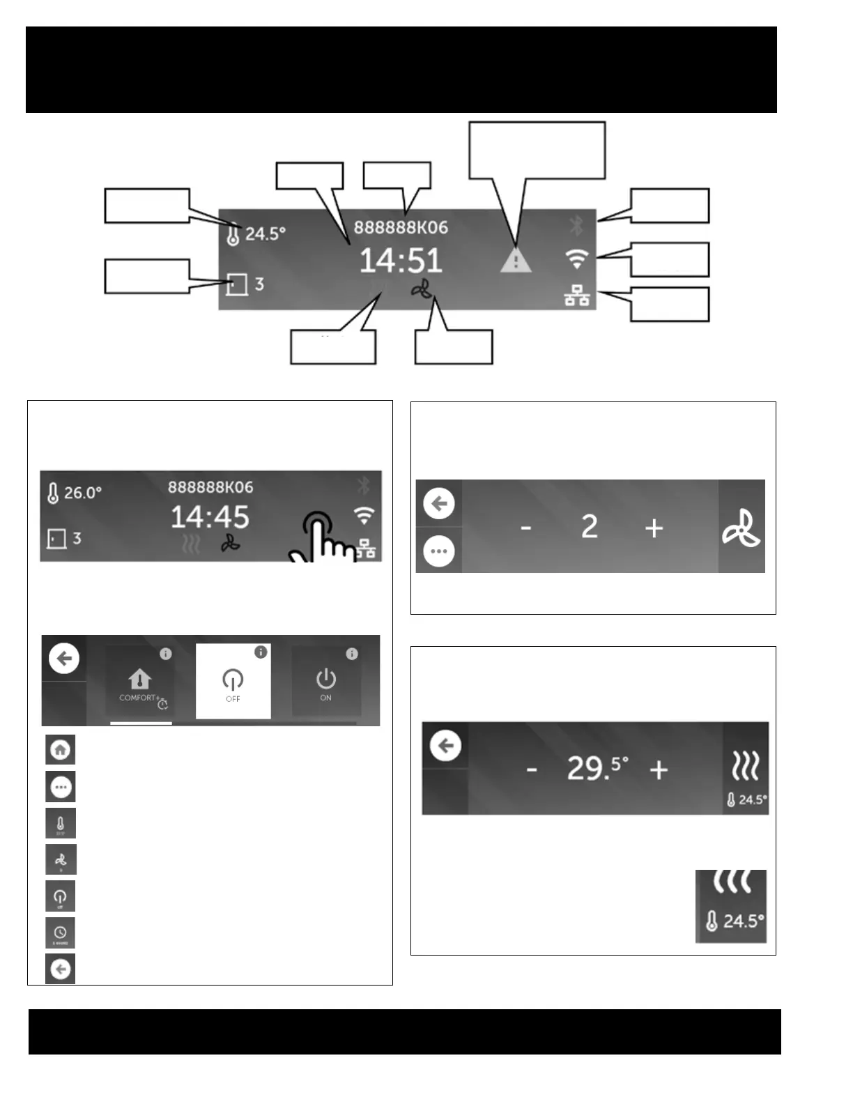 Each panel can control a specic parameter of the air curtain.