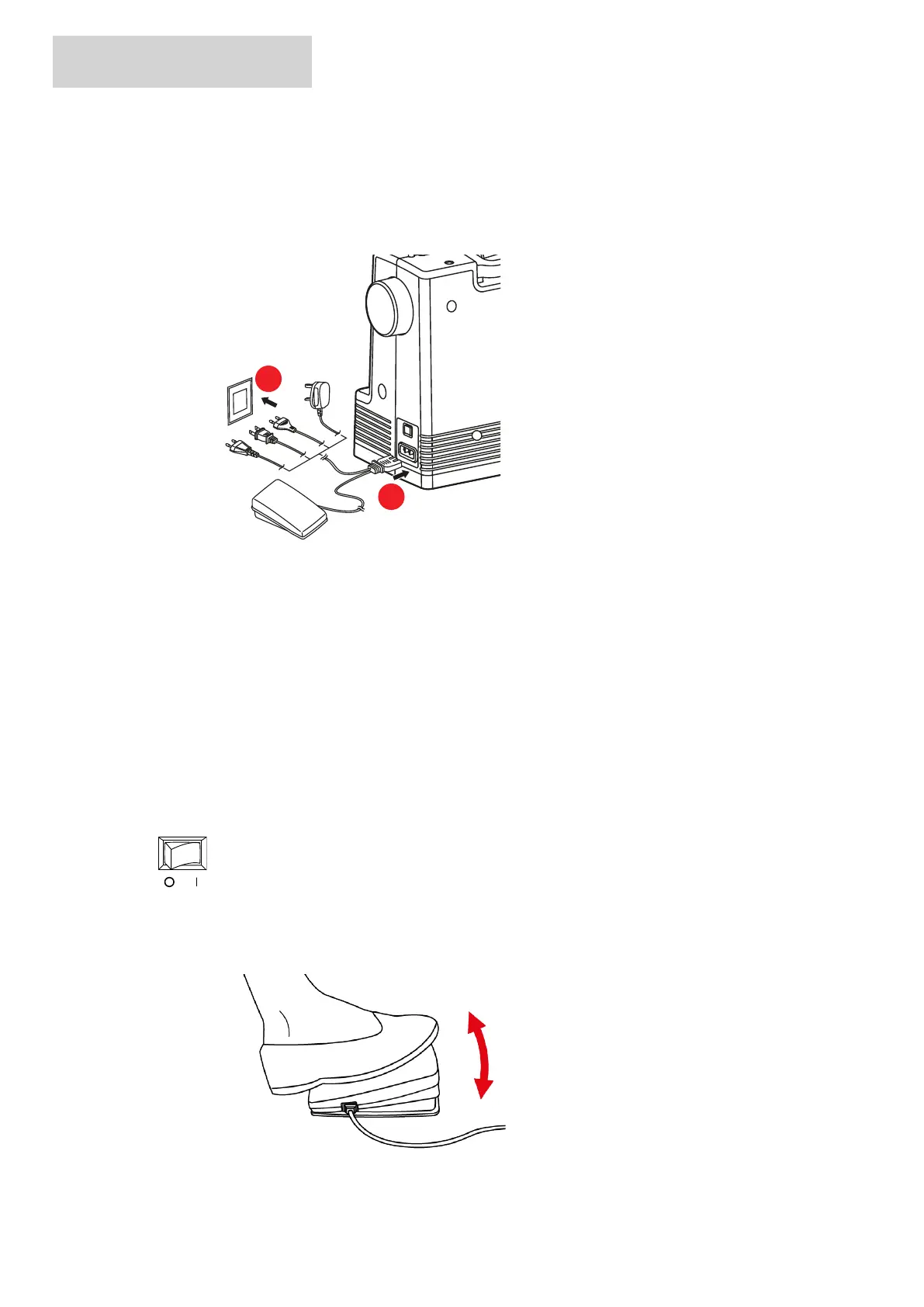 > Insert the power plug (2) of the foot control/power cable into the socket.