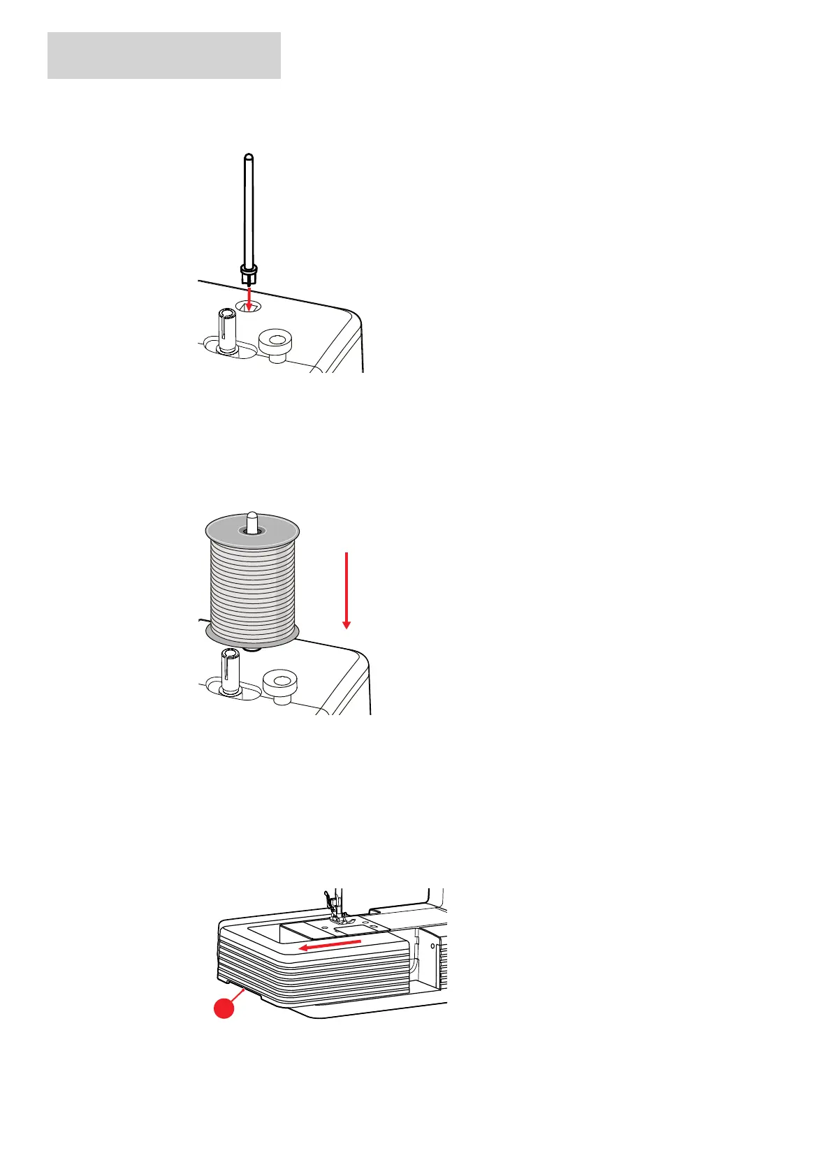 > Insert the second spool pin in the accessories opening on the machine cover.