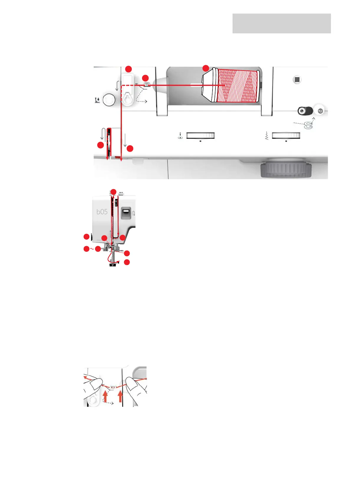 > Place the thread spool on the spool pin so that the thread unwinds clockwise.