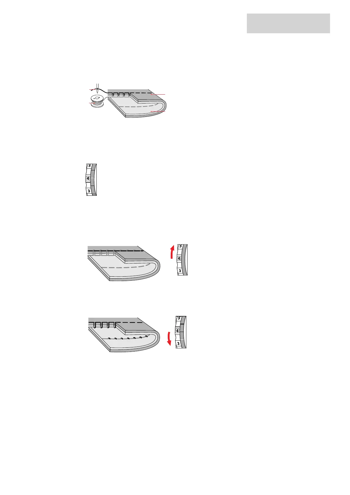 > To decrease the upper thread tension, set the «Upper thread tension» dial to a lower value.