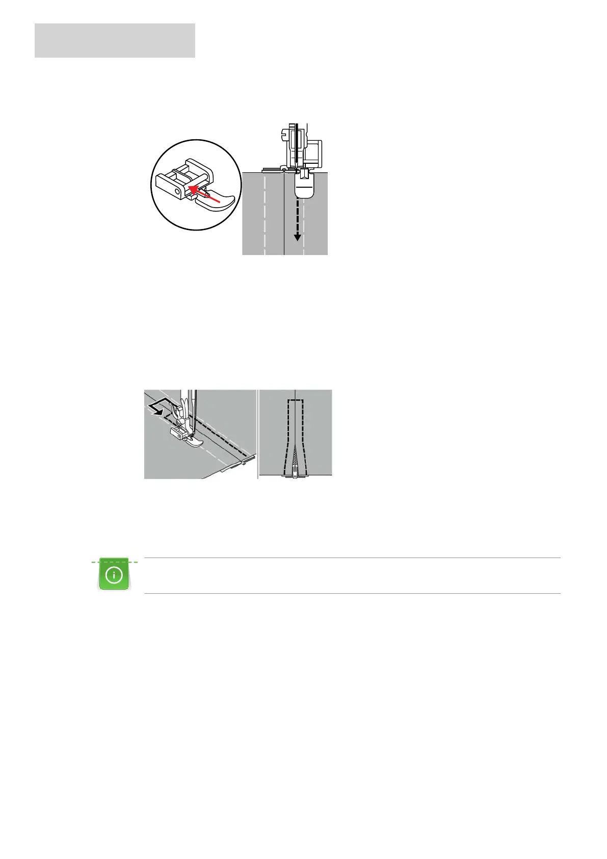> When sewing the right-hand side of the zipper, secure the left-hand side of the presser foot pin using the