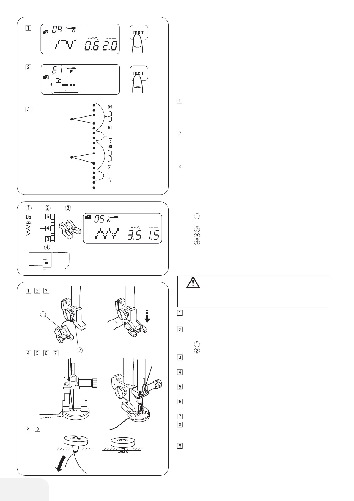 Pattern 61 (2 counts of straight stitch) is memorized.