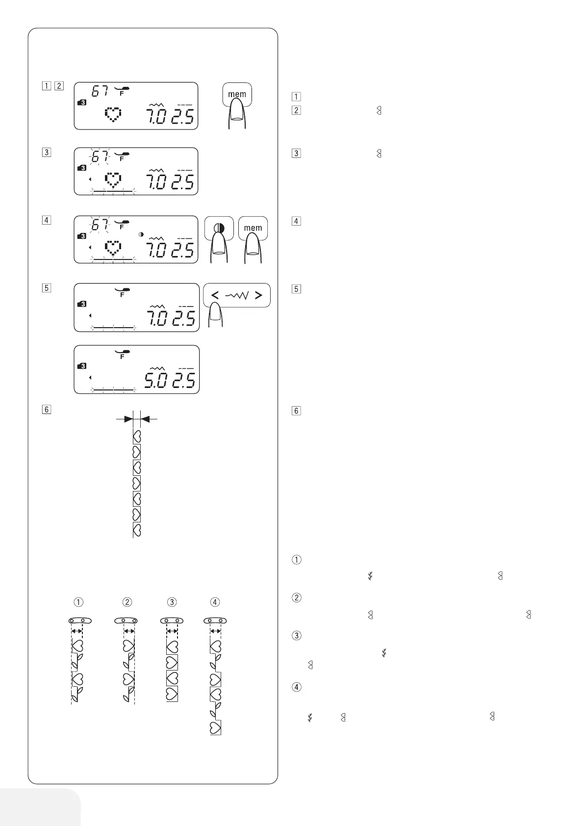 The needle position of the programmed patterns will vary depend-