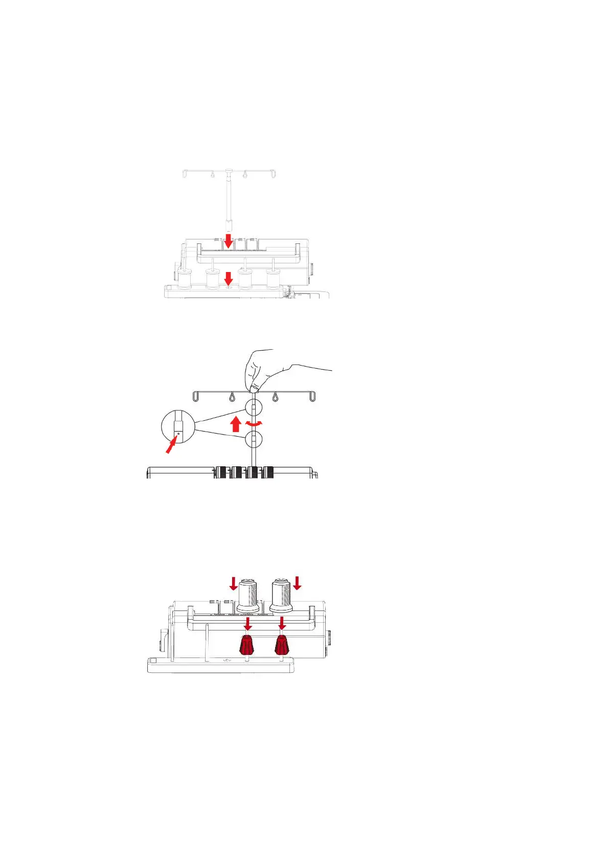 Bij grote garenspoelen zorgt de spoelhouder ervoor dat de garenspoelen stabiel vastzitten op de