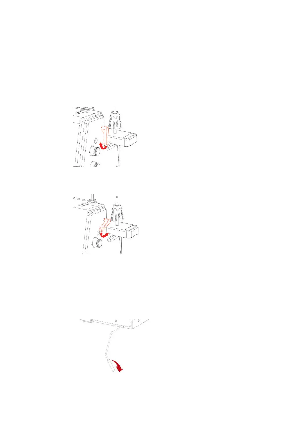 > Verminder de druk op de kniehevel geleidelijk om de naaivoet langzaam weer omlaag te zetten.