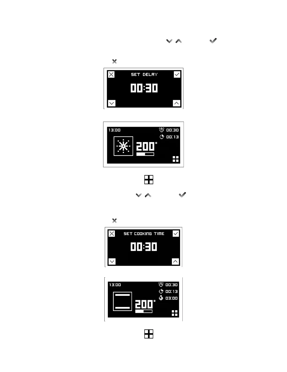 The oven will turn on at the set time and it will be confirmed with a repeating tone.