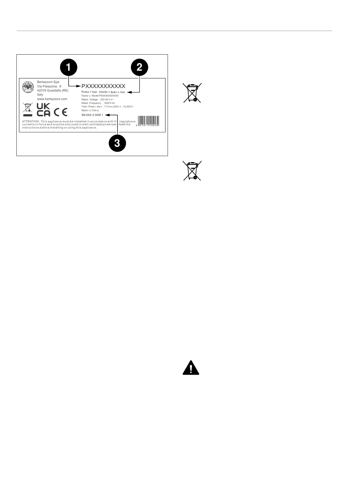 La targhetta contiene le seguenti informazioni: