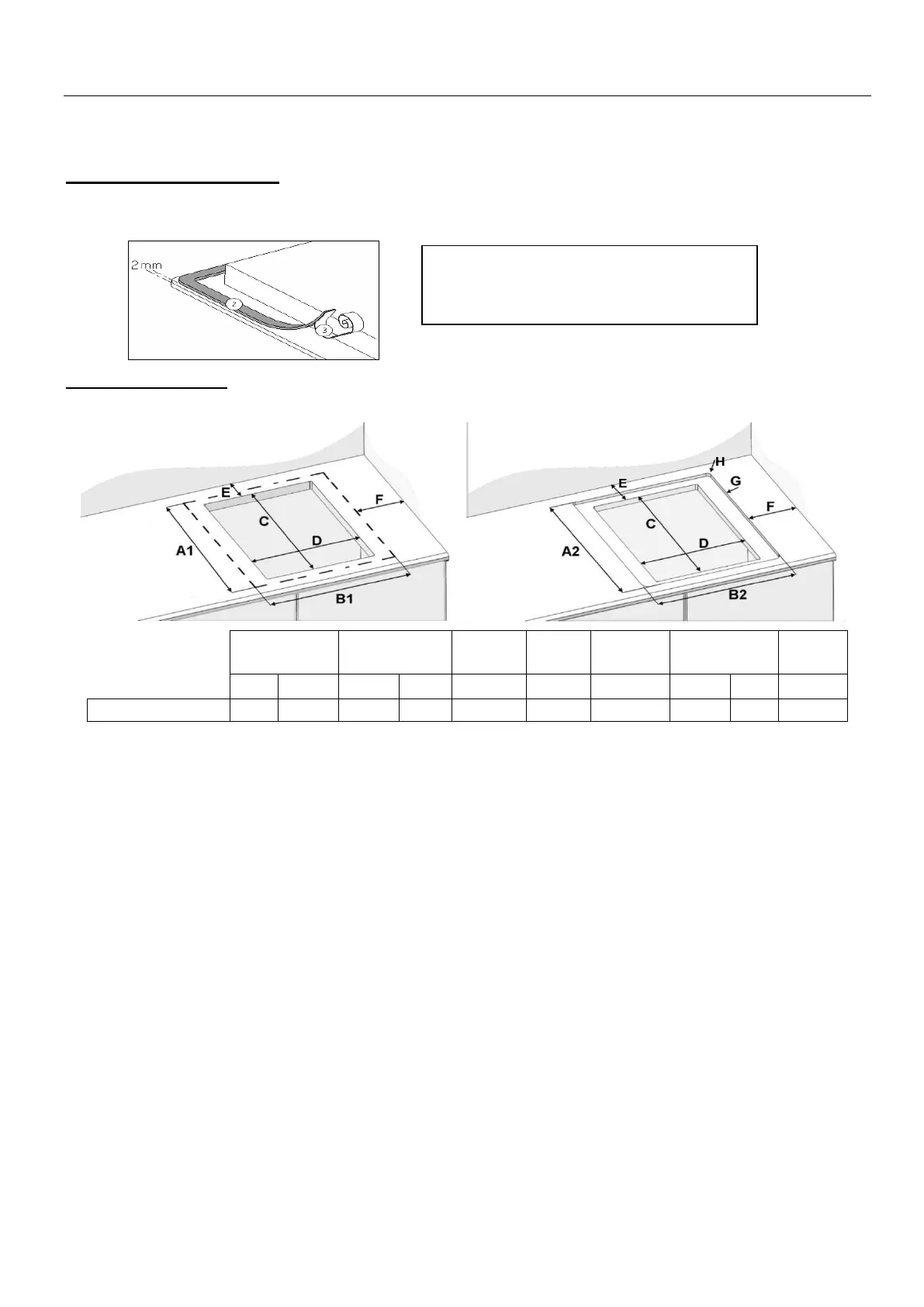 The gasket supplied with the hob avoids all infiltration of liquids in the cabinet.