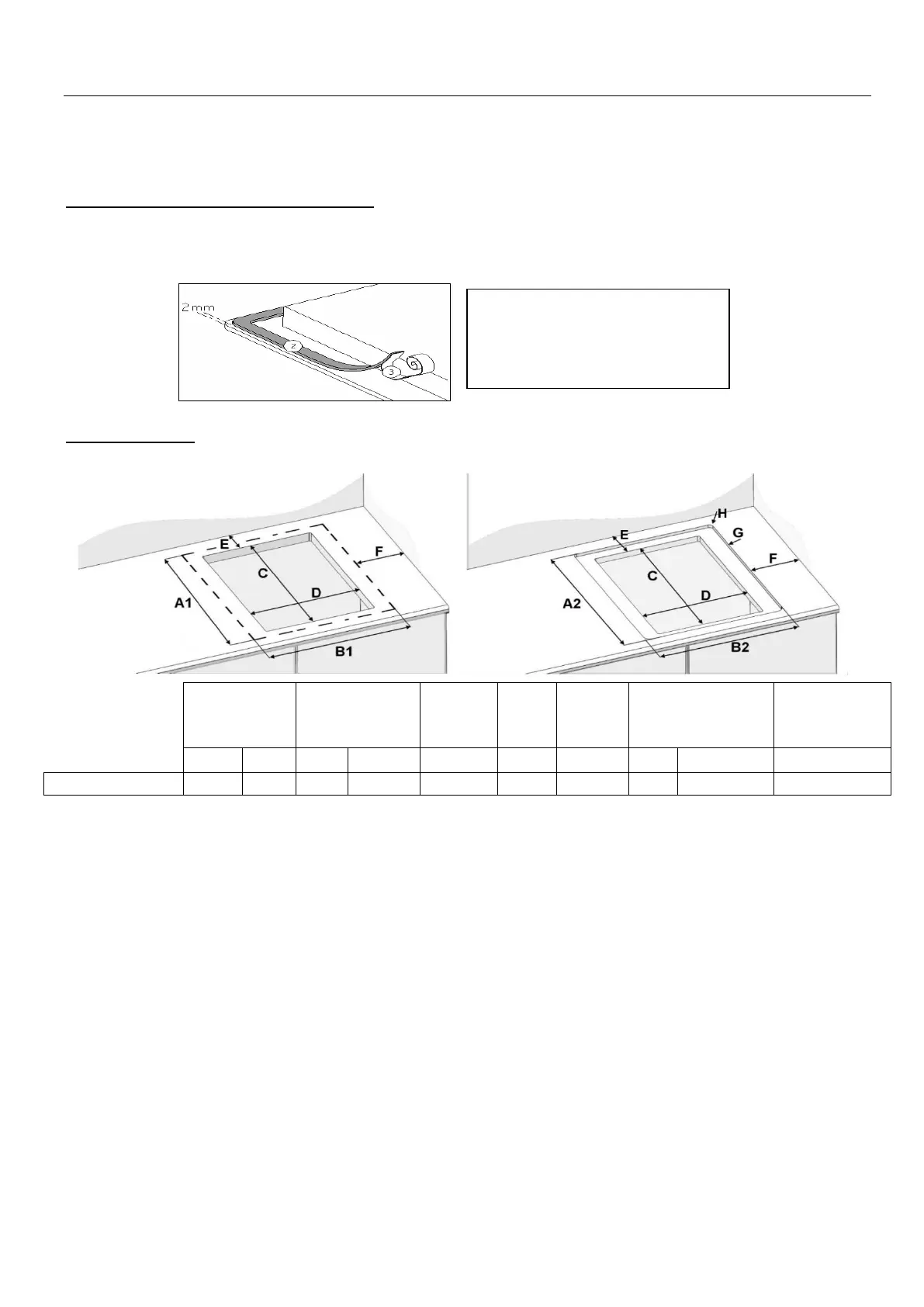• La découpe du plan de travail sera suivant le modèle de table de :