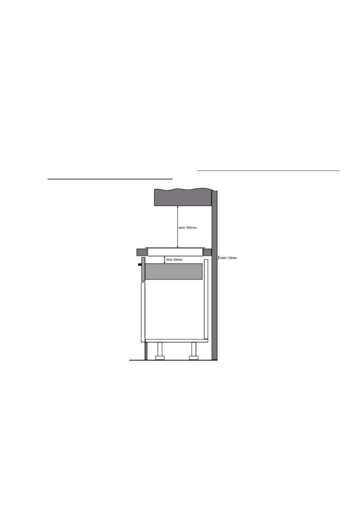 • La distance entre la table de cuisson et le mur doit être au minimum de 50mm.