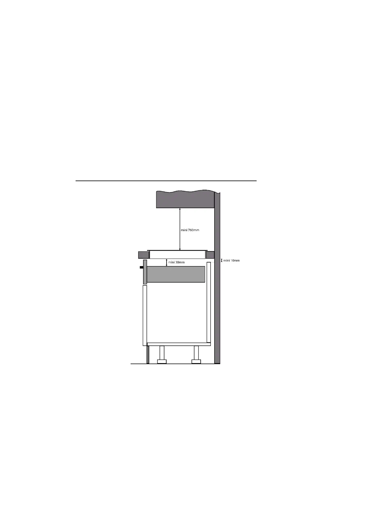 • La distancia entre la placa de cocción y la pared debe ser de 50 mm. como mínimo.