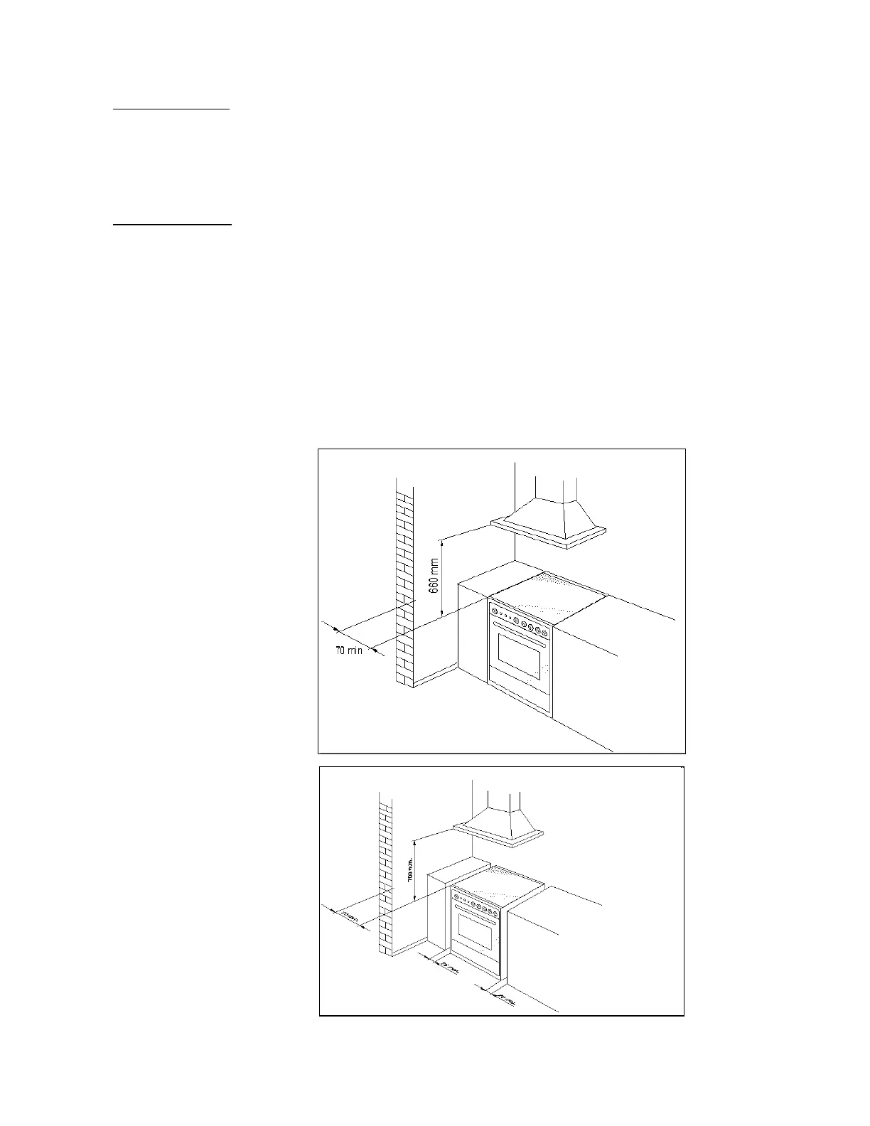 Any walls of the adjacent furniture pieces and the wall behind the cooker must be