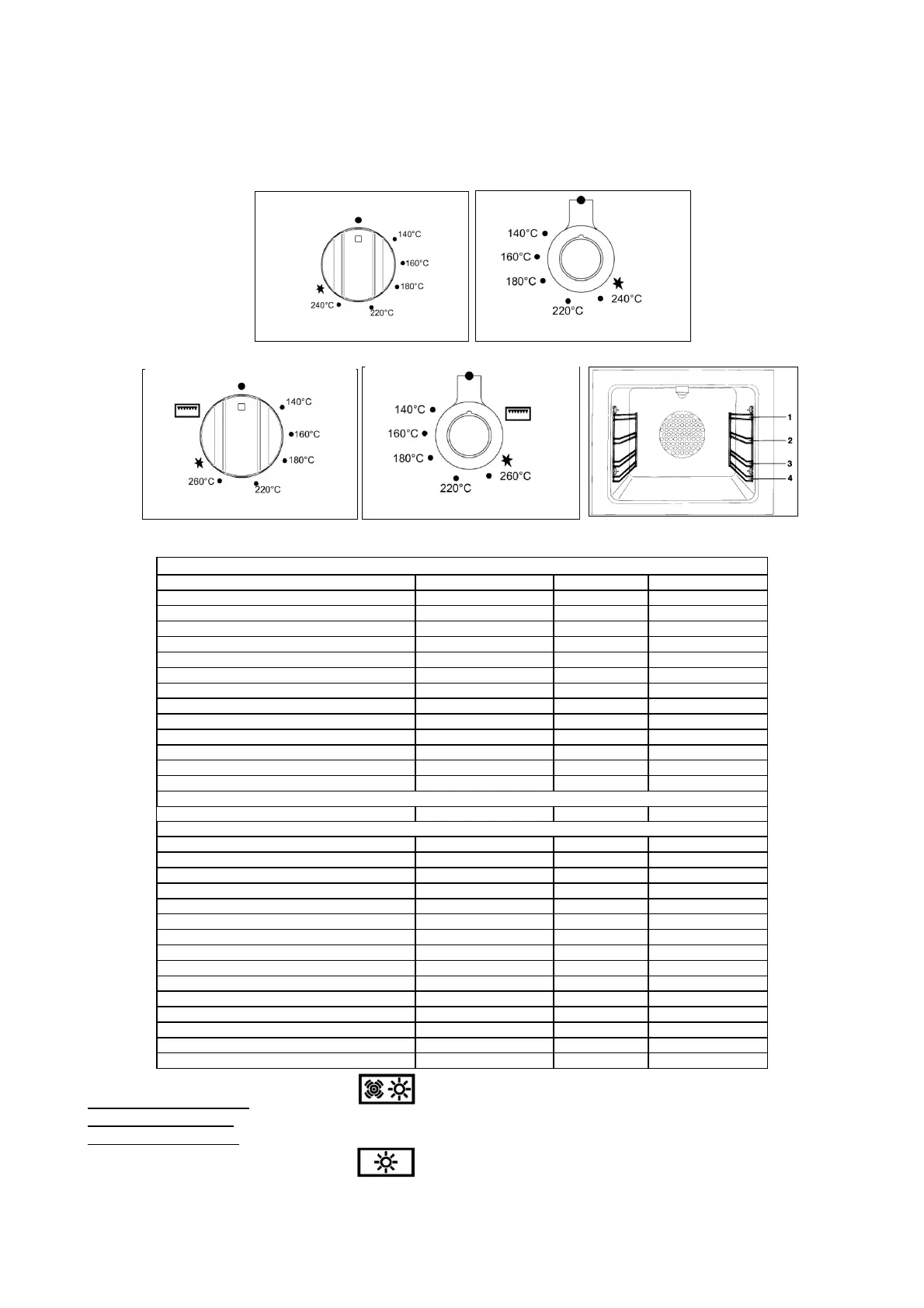 Using the 2 + 0 switch – the symbol indicates that the electric fan, and the oven light have