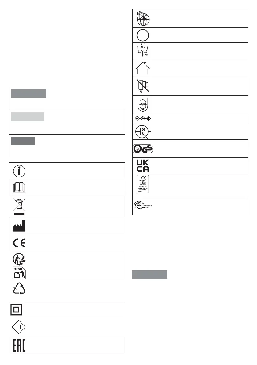 The following symbols are used on the device, in these instructions