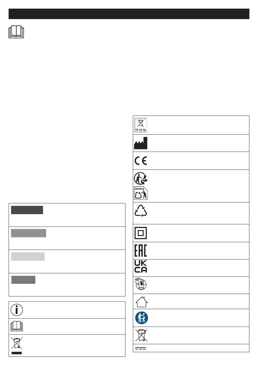The following symbols are used on the device, in these instructions