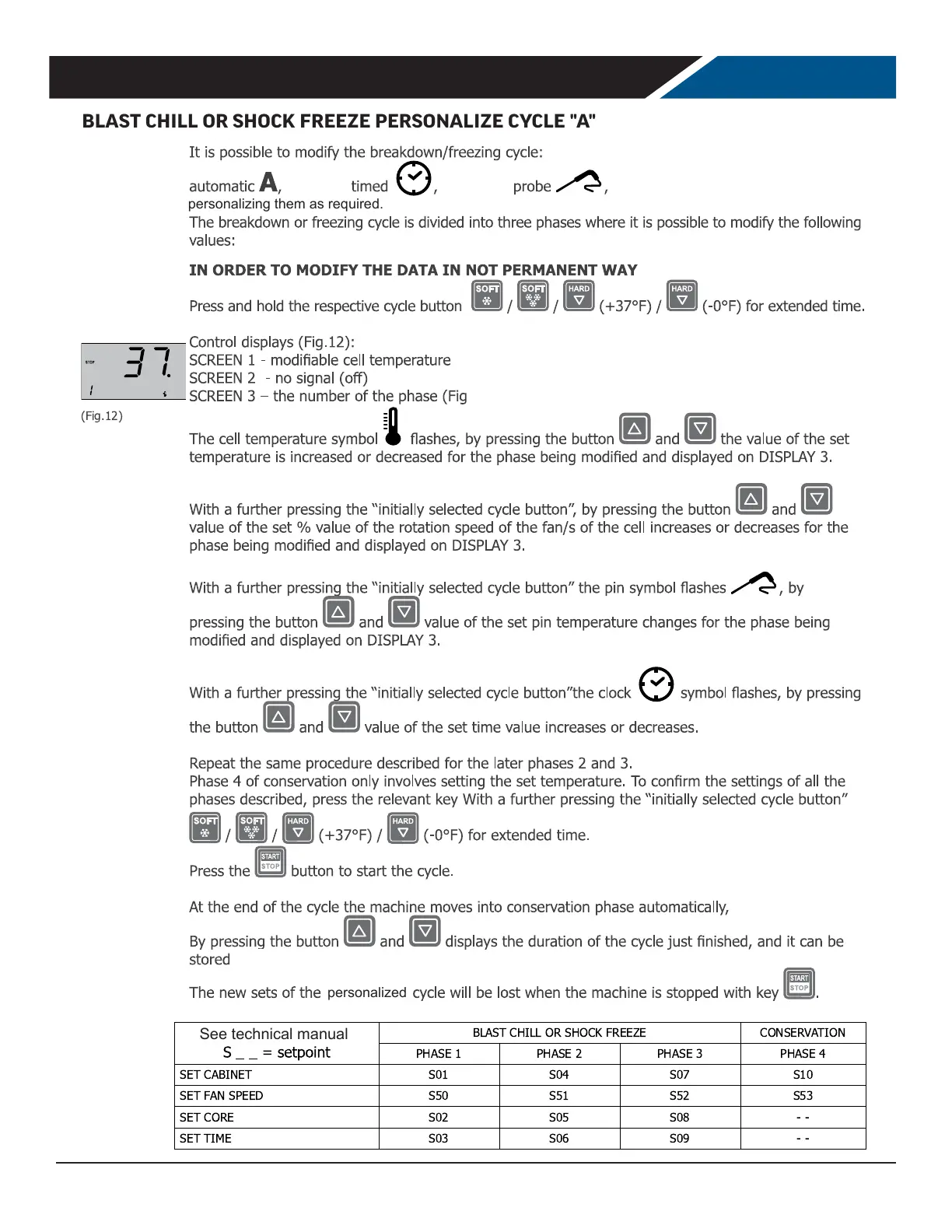 BLAST CHILL OR SHOCK FREEZE PERSONALIZE CYCLE "A"