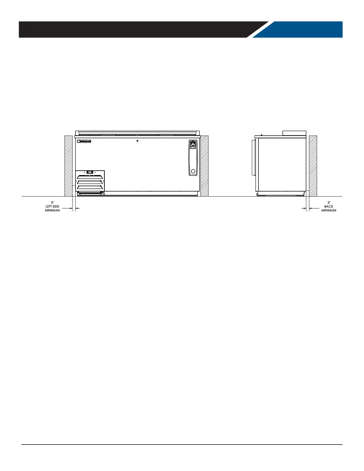 Ventilation: Grille area at front must be free and clear of any object or wall.