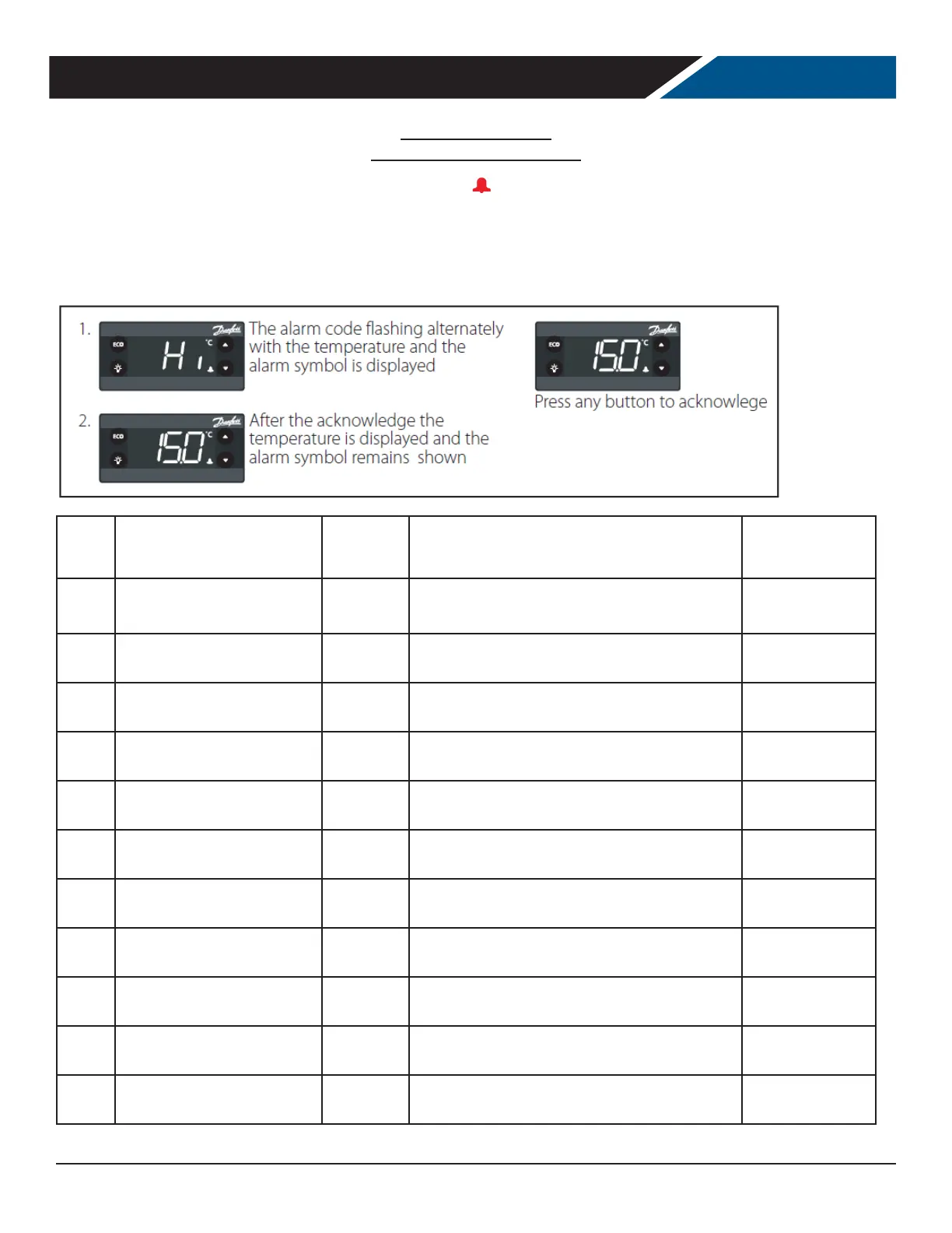 The alarm condition is always signaled by the alarm icon . Press any button to silence the alarm, the relative icon