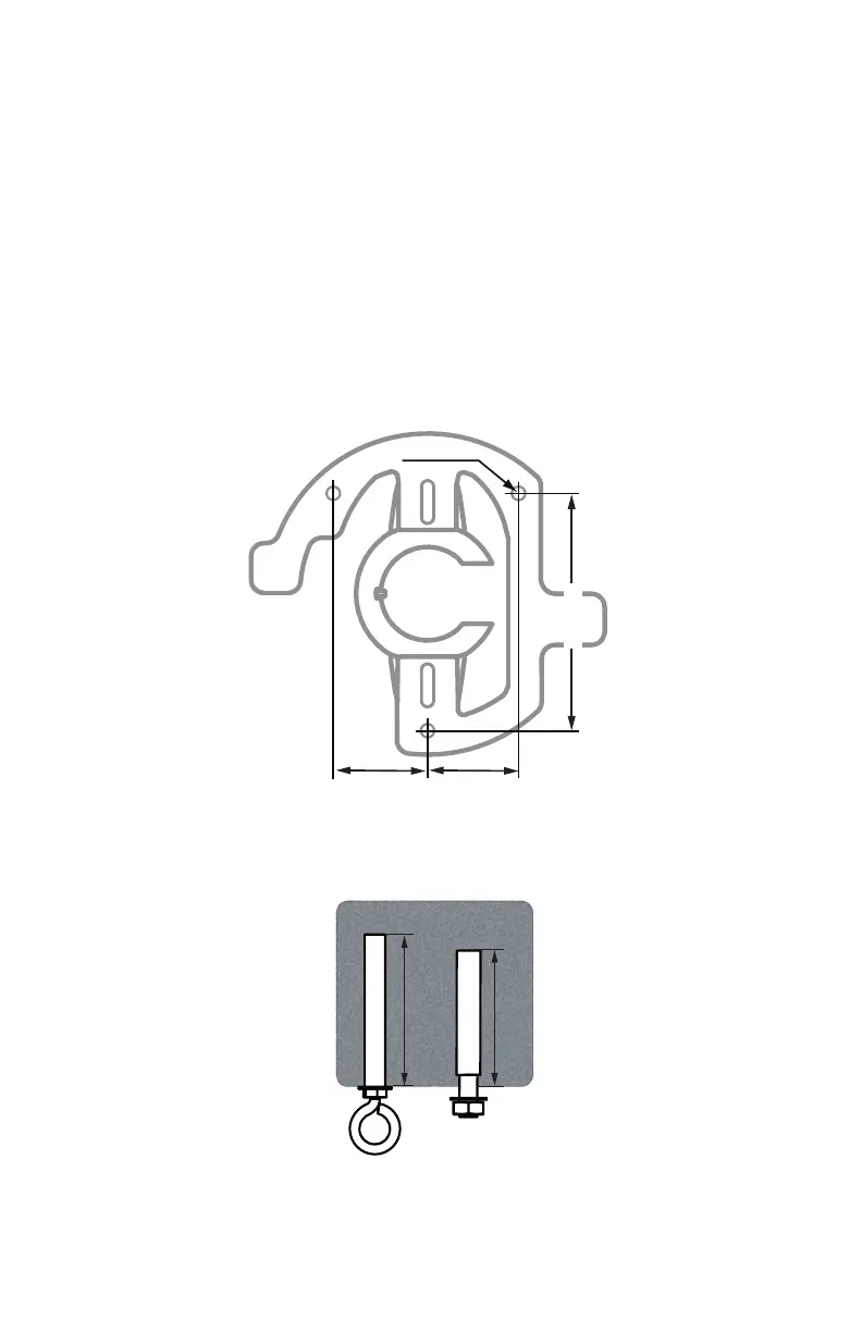 surface du plafond. Positionnez le support de montage sur les boulons d'ancrage.
