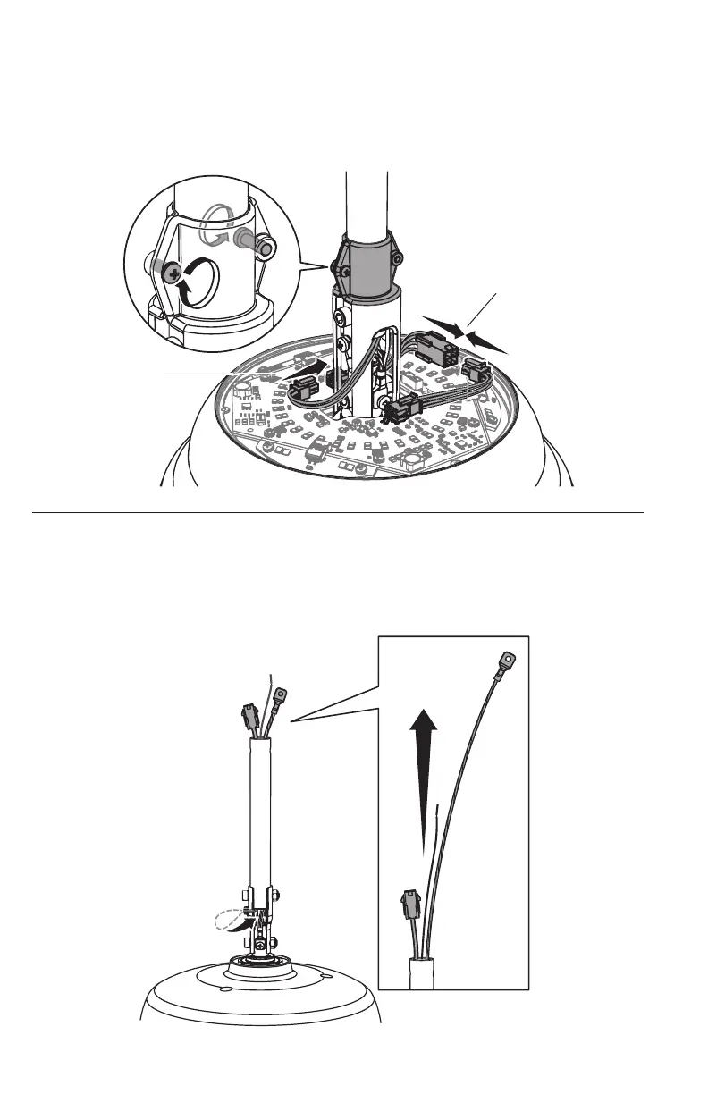 Tighten the two set screws at top of uplight. Connect uplight wiring harness to motor