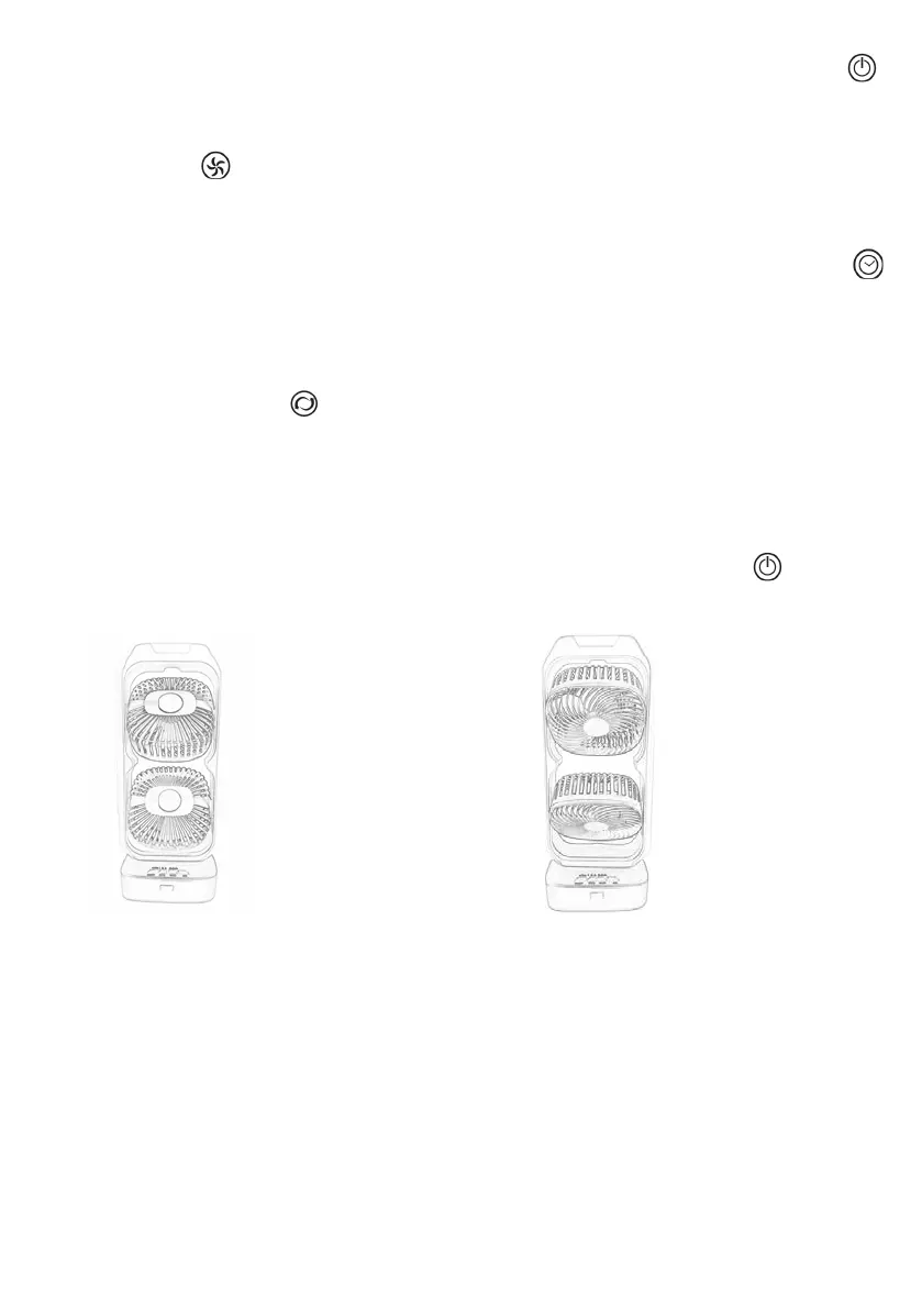1) To turn the fan on, press the “ON/OFF” button on the control panel (7) or the remote control “ ”.