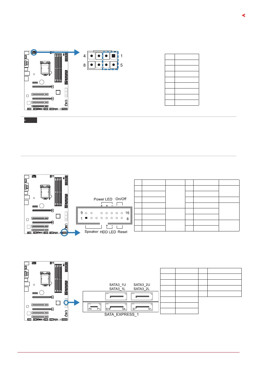 This 16-pin header includes Power-on, Reset, HDD LED, Power LED, and speaker connecon.