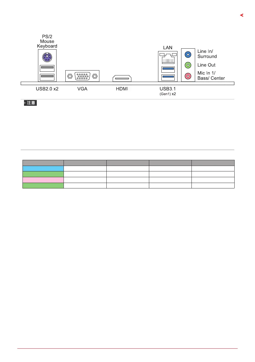 粉红色 (背部面板) 麦克风输入 麦克风输入 中置/重低单声道输出 中置/重低单声道输出