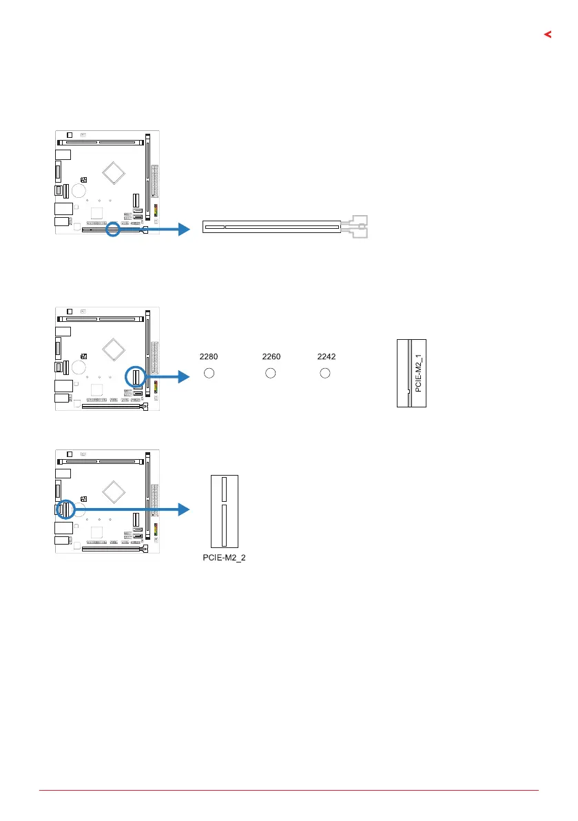 • M.2插槽支持M.2 Type 2242/2260/2280 SSD模块。安装M.2模块前请将六角柱放
